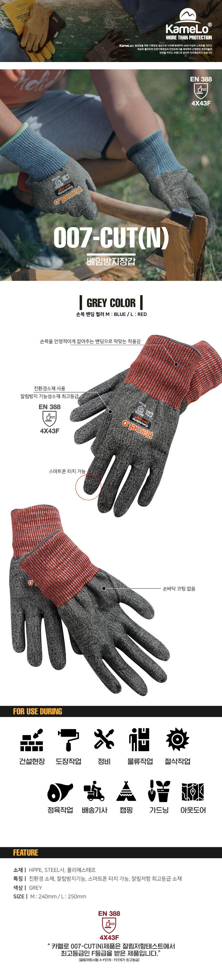 특징ㅣ친환경소재, 잘림방지기능, 스마트폰 터치가능, 잘림저항 최고등급원단