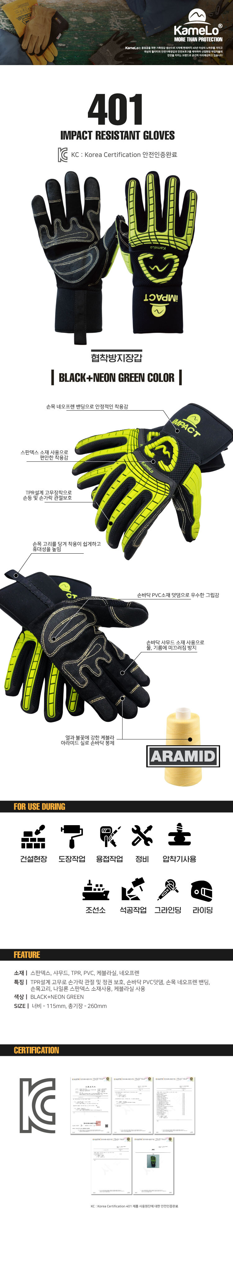 특징ㅣTPR설계 고무로 손가락 관절 및 정권 보호, 손바닥 PVC덧댐, 손목 네오프렌 밴딩, 손목고리, 나일론 스판덱스 소재사용, 케블라실 사용