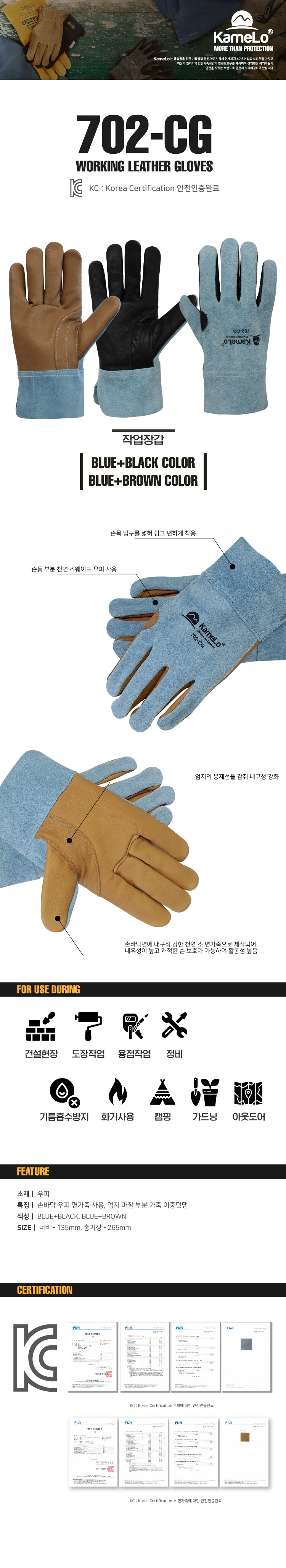 특징ㅣ손바닥 우피 면가죽 사용, 엄지마찰부분 가죽 이중덧댐