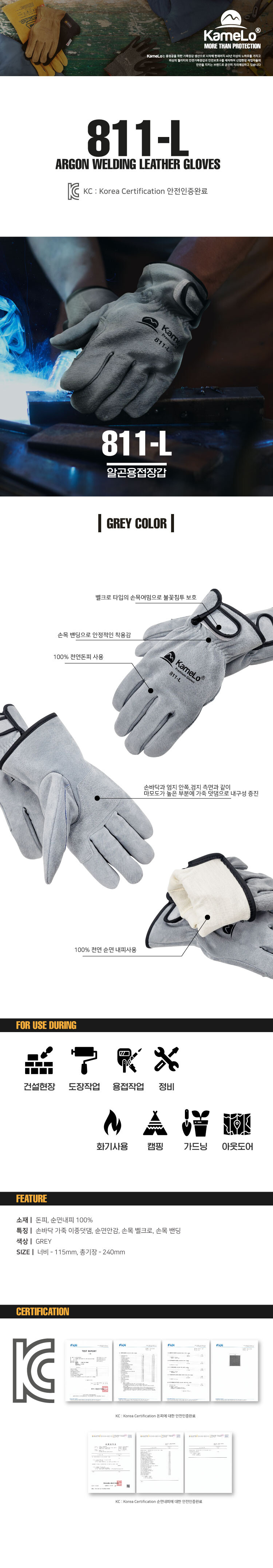 특징ㅣ손바닥가죽 이중덧댐, 순면안감, 손목벨크로, 손목밴딩